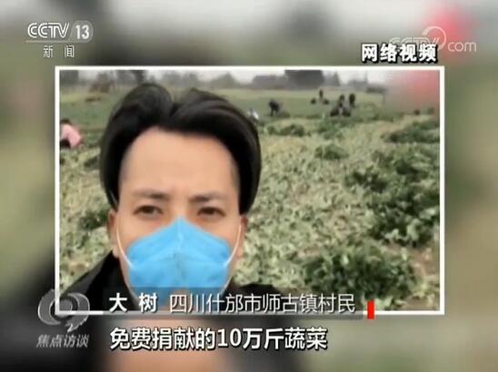 這是什邡市師古鎮(zhèn)的一個(gè)農(nóng)村網(wǎng)紅,網(wǎng)名叫大樹(shù)哥。疫情發(fā)生以后,他也想為武漢做點(diǎn)什么。他說(shuō),自己沒(méi)什么錢,但是地里有菜。